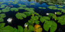 Yellow Flowers are Carnivarous Bladderwort Plants (Utricularia), White Flowers are Fragrant Water Lily (Nymphaea odorata), Water Moccasin, Alligator Gar, Lumix TS4 Camera, Panoramas, HDR Experiments in the Vein of Monet and M.C. Escher